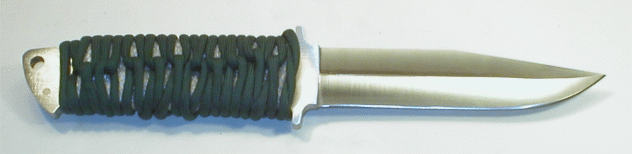 | A traditional and good looking handle treatment is the cord wrap. It's popularity with survival knives comes from the fact that it's easy to do and provides a superb, non-slip grip in all adverse environmental conditions. Cord wrap is a technique that can be adopted in a variety of ways to give you a wide range of attractive looks. Be creative: if you don't like the look, undo it and try it again. To be honest, I still prefer the look of wood scales, but I guarantee that once you wrap your hand around a cord grip, you'll never be satisfied with the feel of anything else. | ||