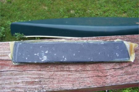 Please, I beg of you, tape the edges of the blade so you don't die from blood loss while handling the blade during the buffing process. I use the low-tack blue painters tape so it comes off neatly and cleanly when done. Also tape up any adjoining wood surfaces so you don't grind any compound into the wood ( very hard to remove later !!) |