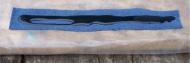 The moment of truth: applying the resin to the first strip of jean material. Please notice the waxed paper--very important. Might not be a bad idea to have a cheap foam brush on hand to spread the resin. repeat for all 22 strips. |